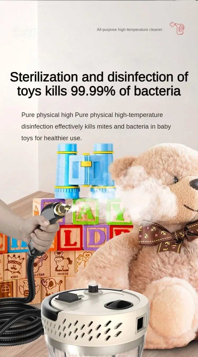 - El vapor a alta temperatura elimina el 99,9 % de las bacterias; esteriliza de forma segura palillos, biberones y tetinas y a la vez facilita la limpieza de manchas.